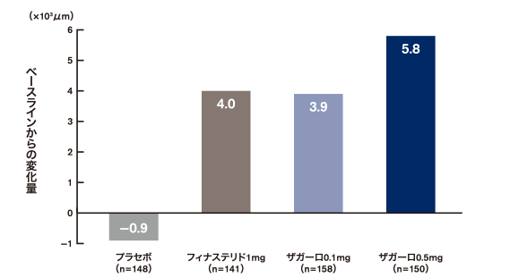 プロペシア(フィナステリド)1mgに比べてザガーロ0.5mgは毛髪の太さが有意に増加しています。